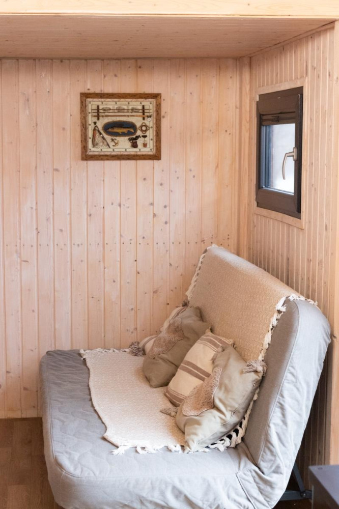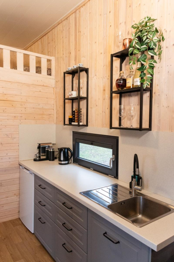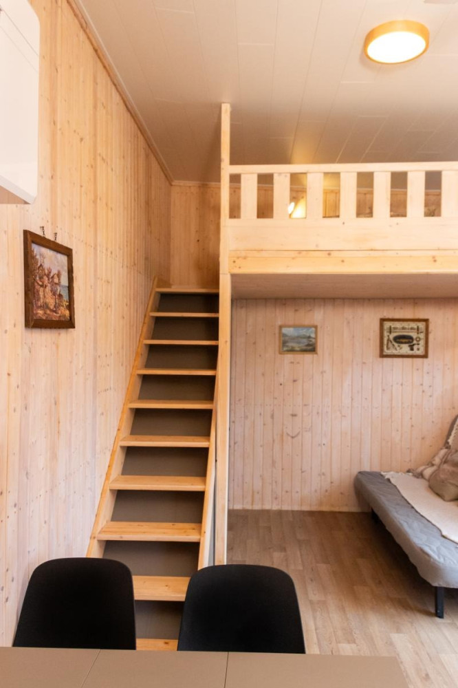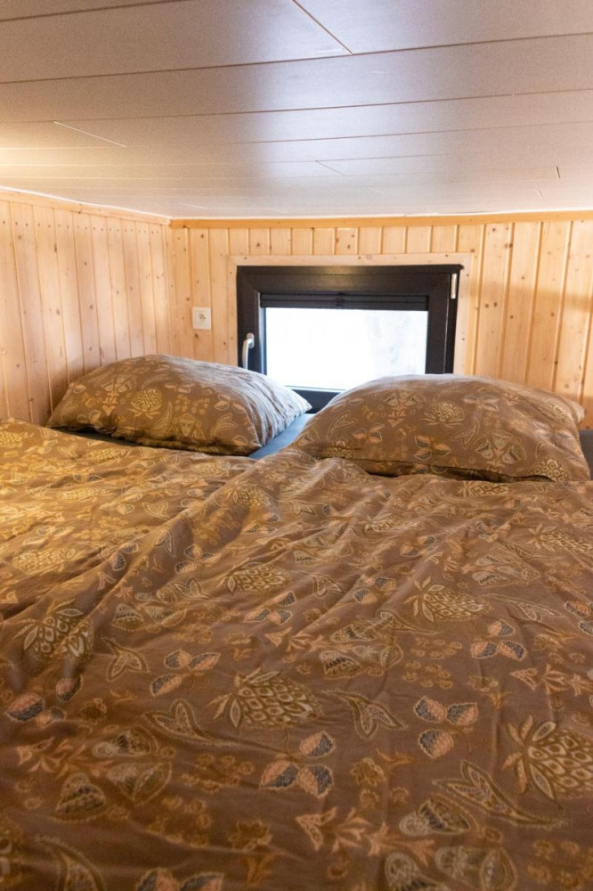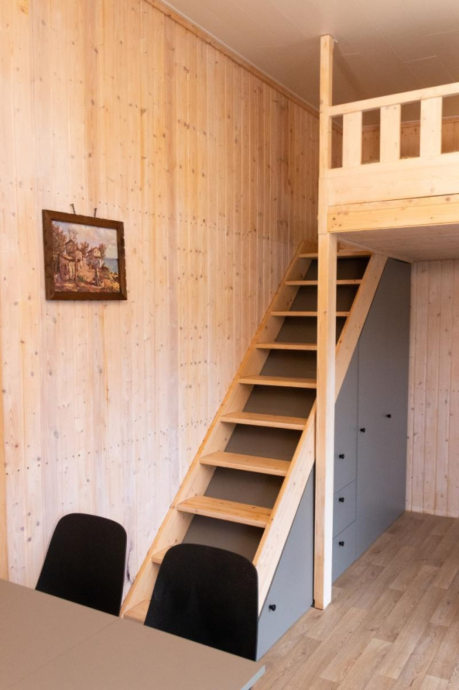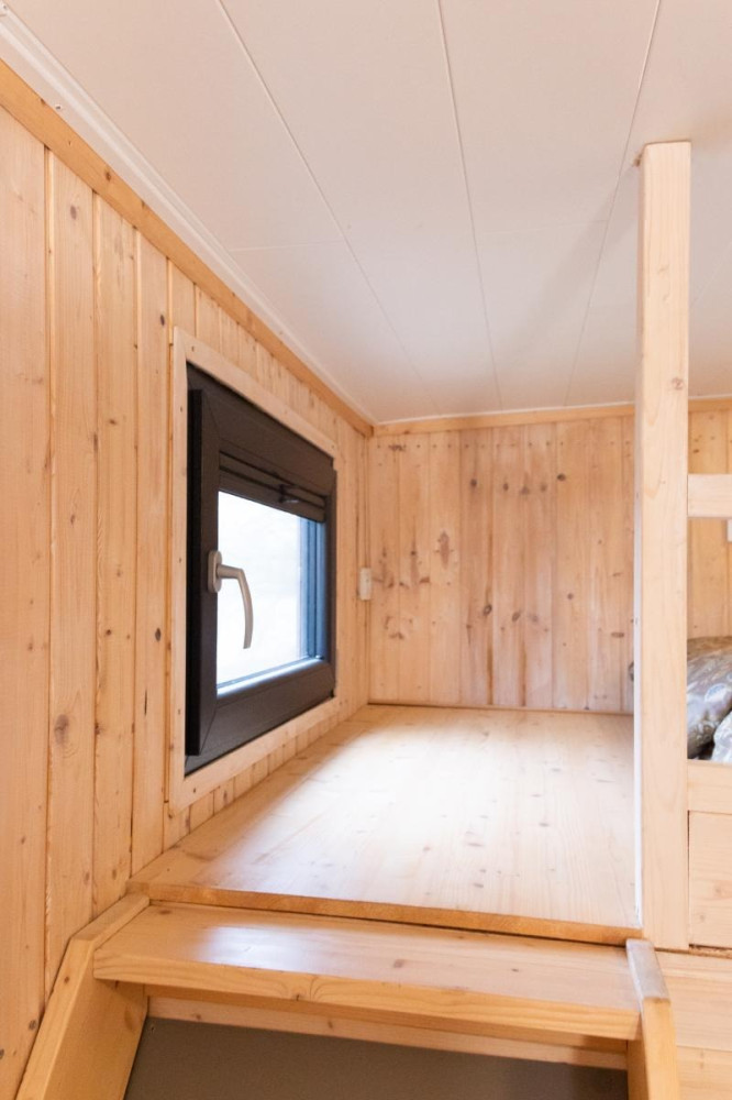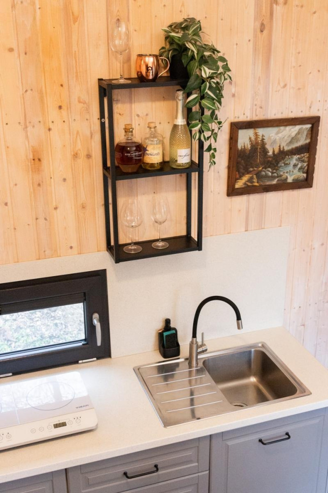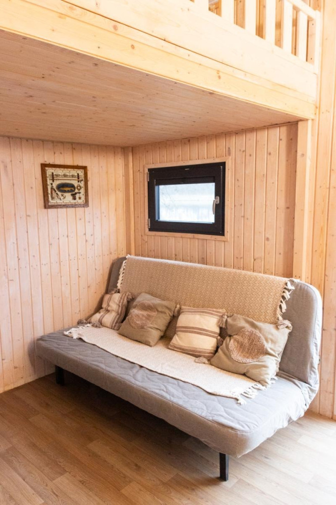 Netradiční ubytování v dřevěném mini domku (27 m²), který je pro vás komfortně zařízen. K dispozici jsou dvě patra na spaní s kapacitou pro 2 dospělé a 2 děti. Samozřejmostí je plně vybavená kuchyňská linka (lednice, mrazák, indukce) a vlastní koupelna se splachovací toaletou a sprchovým koutem. Vychovaní pejsci malých plemen (do 10 kg) jsou u nás vítáni.