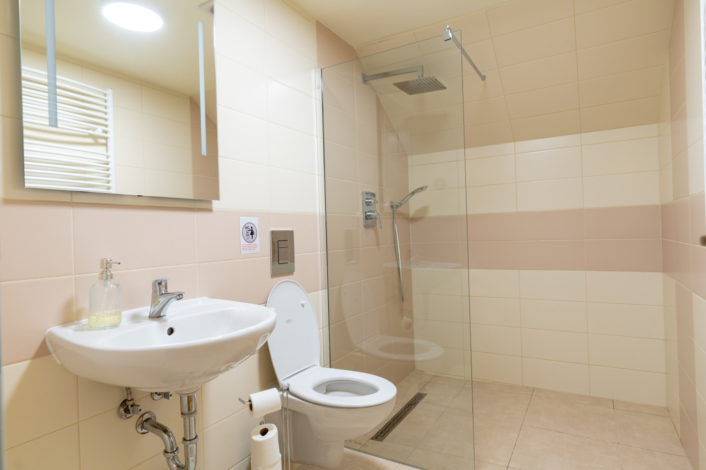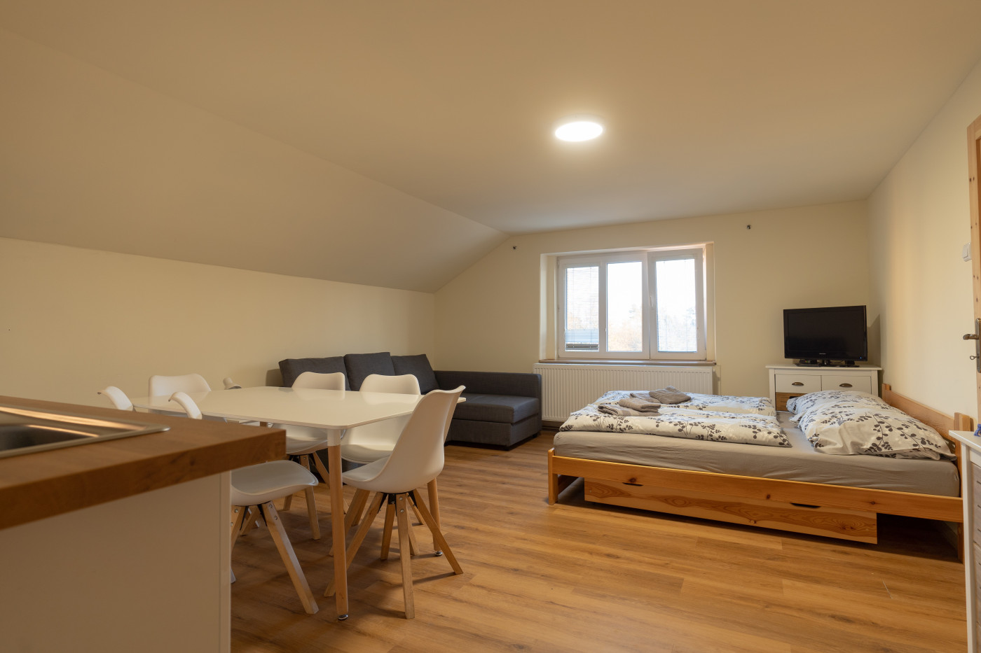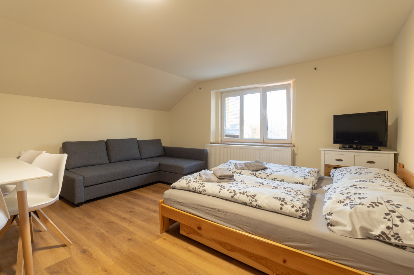 We provide free parking for one car to each apartment. If you need to park more cars, you can use the free area near us, next to the sorted waste containers, or the paid parking at the Hubert Hotel. Our guests park for 100 CZK/day.
