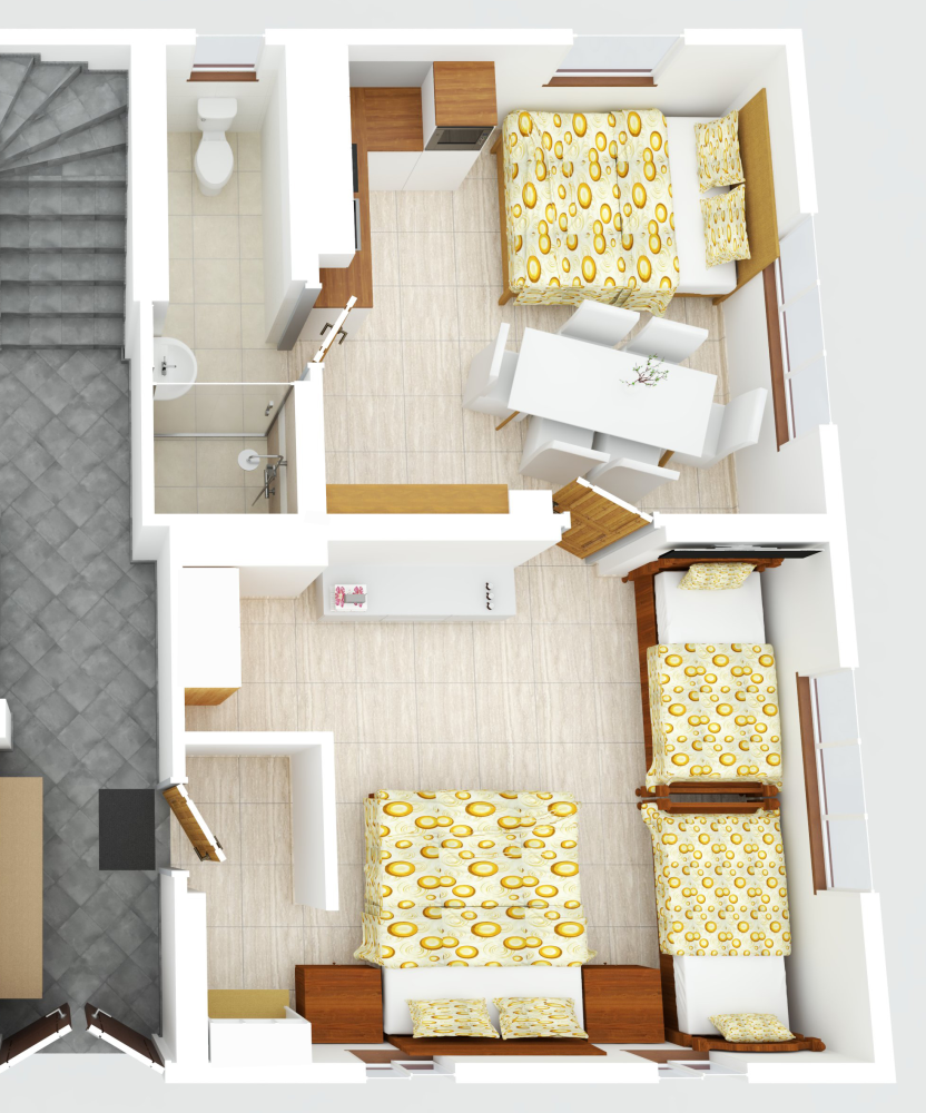 In the corridor of the apartments you will find boxes for sorted waste, please sort your waste if it does not bother you - the yellow box is for plastics, the green one for glass and the white one for old paper. There are also boxes for metal waste and cardboard