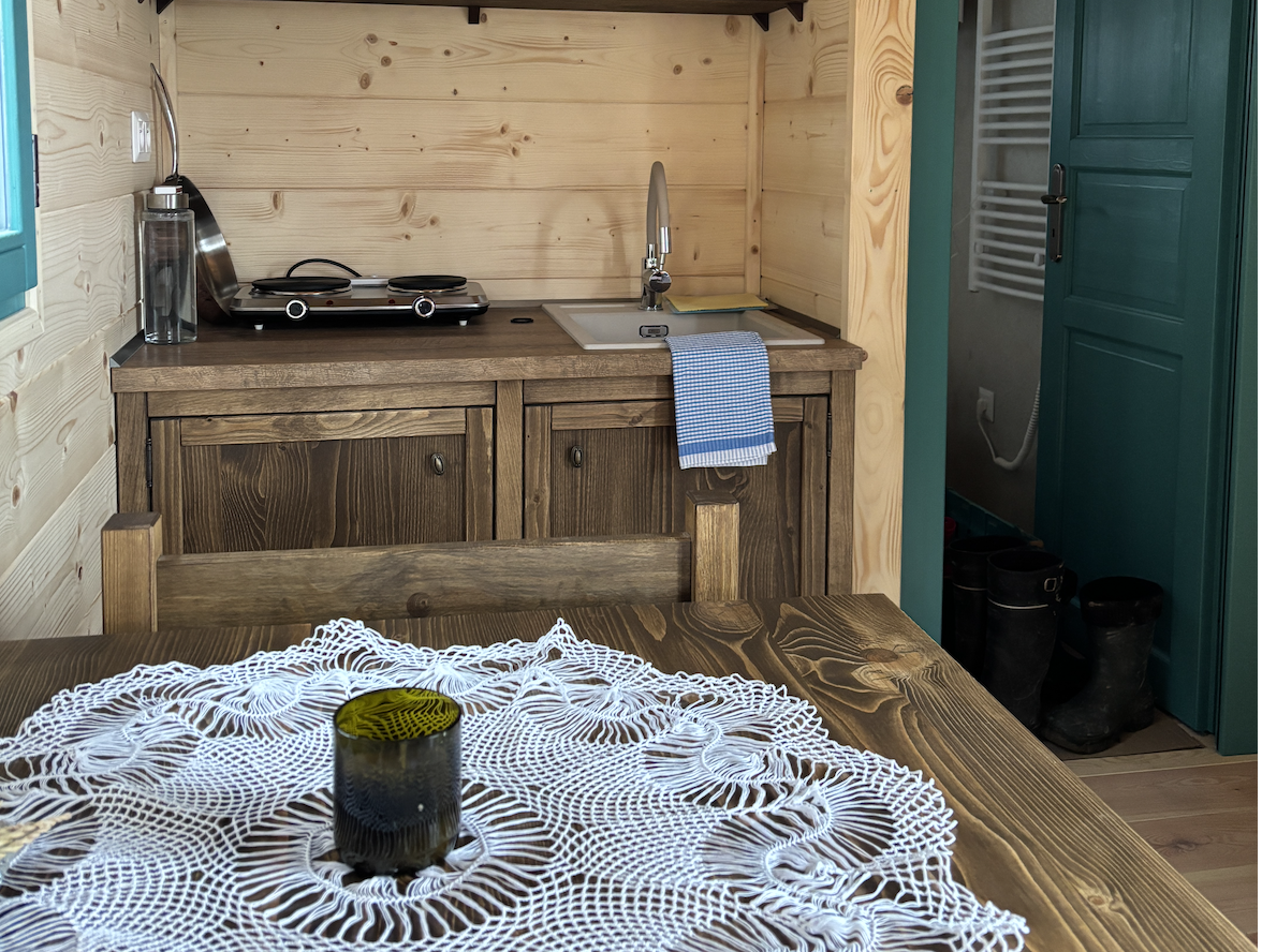 Lenivka je viac než maringotka. Je to nový spôsob, ako cestovať a byť spolu. Miesto, kde sa spája príroda a vy do jedného silného zážitku. Drevená maringotka z prírodných materiálov je navrhnutá pre jednoduchý a udržateľný život. Nájdete v nej manželskú posteľ, kuchynku, sprchu aj separačnú toaletu – skrátka všetko potrebné, len bez zbytočných rušivých vplyvov civilizácie. Stojí v sade na okraji lesa, ďaleko od ľudí a blízko k srnkám, vtákom a vlastným myšlienkam. Ráno tu namiesto budíka štebotá príroda a večer sa môžete kochať výhľadom na Inovec. Prístup je pešo – auto si oddýchne a vy tiež. Odporúčame topánky, ktoré zvládnu rannú rosu, pretože dobrodružstvo sa tu začína ešte pred dverami. Ak hľadáte ticho, súkromie a trochu pomalší svet, Lenivka vás už čaká.